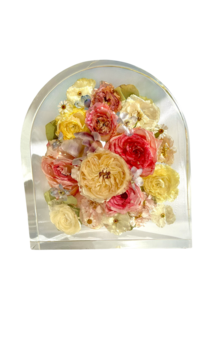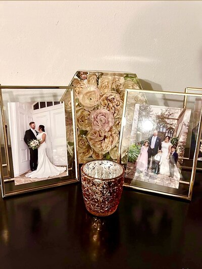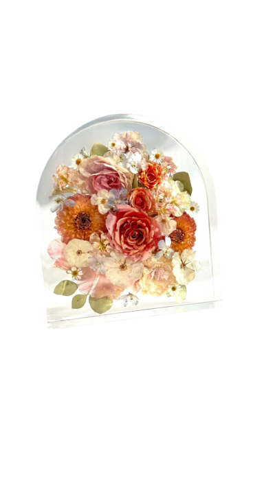 "I'm so grateful I found Tricia to preserve my flowers! I was able to safely ship my fresh wedding bouquet to her, and she took such great care with them. The finished arches and resin tray turned out absolutely stunning!